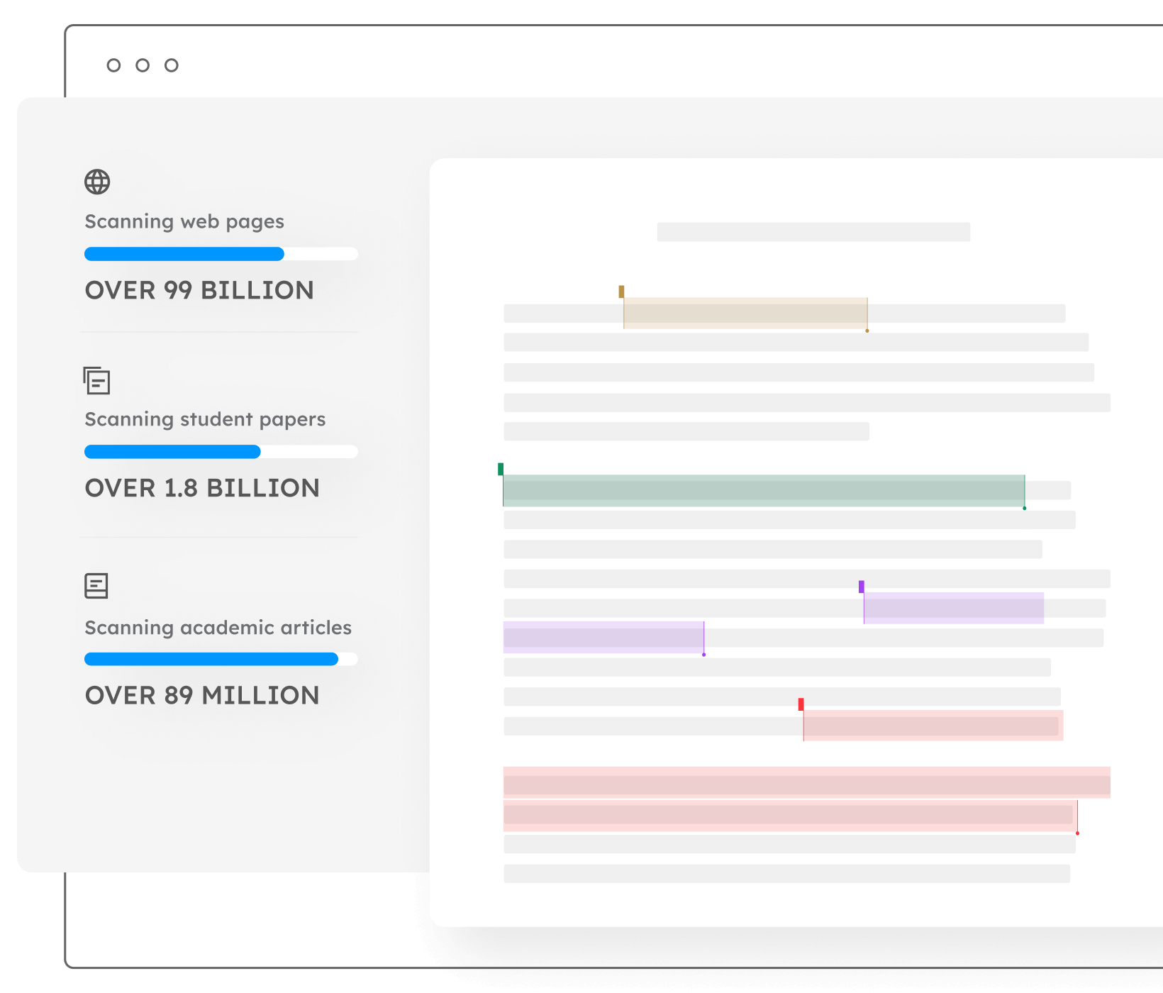 | Öğrenci çalışmalarını, 99.3 milyar güncel ve arşivlenmiş web sayfası, 1.8 milyar öğrenci ödevi ve 89.4 milyon akademik makaleden oluşan sektör lideri veritabanımızda karşılaştırın. |